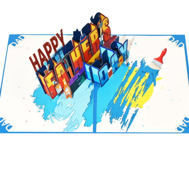 This eye-catching 3D pop-up Father’s Day card opens to reveal bold, stylized letters spelling HAPPY FATHER’S DAY built from playful thematic elements like ties, tools, a beer mug, and paint motifs. The layered paper engineering creates a dynamic upright display framed by energetic paint splashes and bright colors that feel both modern and heartfelt. The front cover echoes the celebratory theme with matching colors and iconography. The card measures 15 x 20 cm and includes a blank insert (8.5 x 13 cm) for your personal message. It folds flat for easy mailing and pops up into a memorable keepsake that suits dads who love humor, creativity, crafts, or a bold visual statement.
