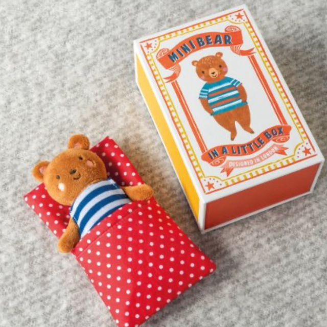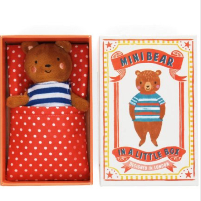 A gorgeous gift for a child to treasure. Meet mini bear, he's snuggled up in his quilt and then safe and sound in a little box. Great for taking when on the go for a child to use as a comfort.