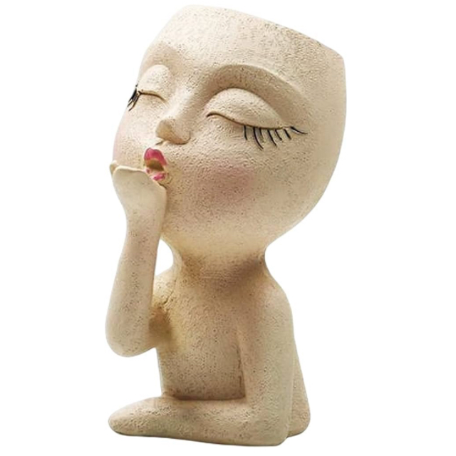 This head planter is made of high quality resin. Sturdy and durable, can be placed indoors or outdoors for a long time, no fear of rain or sun. Will not crack or fade over time. Height: 19cm