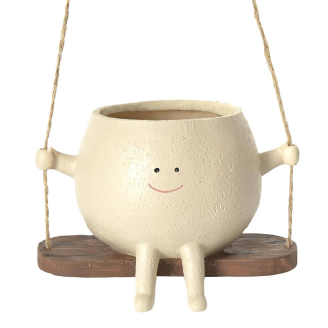 Elevate your indoor or outdoor garden with the Swing Smile Face Planter Pot. Crafted from durable resin, this small hanging plant pot features a charming smile face design and a unique swing chair shape, perfect for showcasing succulents or small plants. Its playful yet sturdy construction makes it an ideal gift for plant enthusiasts, combining decorative appeal with practical use.